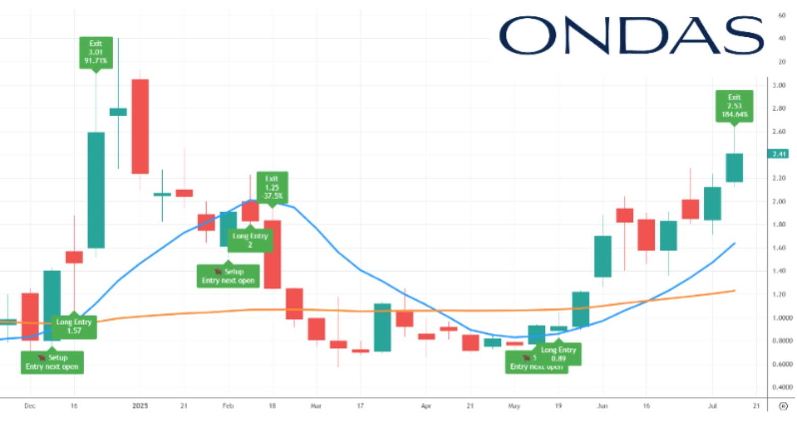 Here you can see where ONDAS Holdings Incorporated served up two massive wins back to back. First, it jumped from $1.57 to $3.00 for a 91.71% gain.