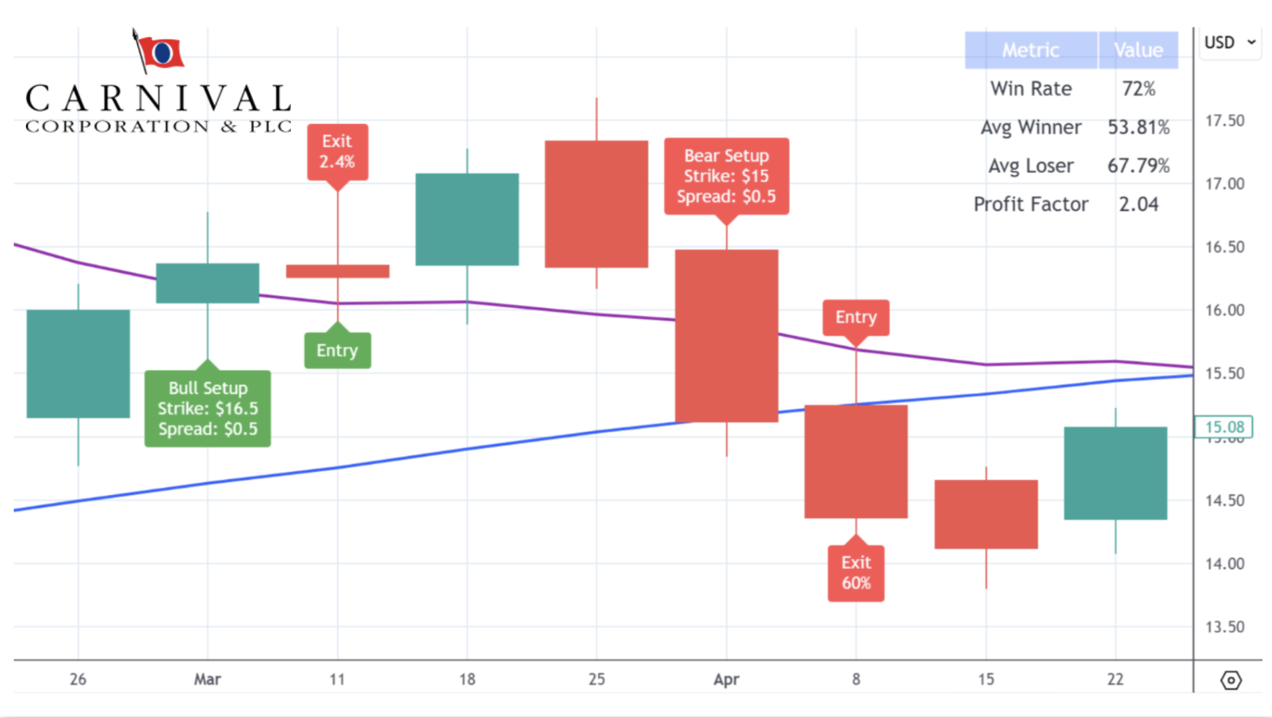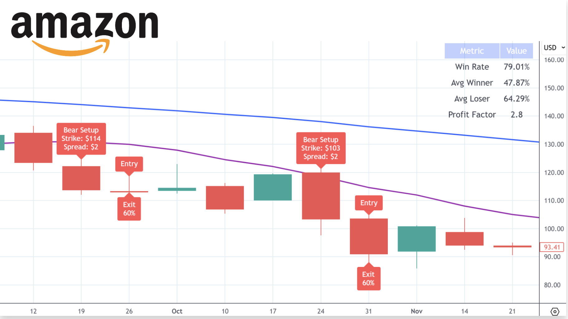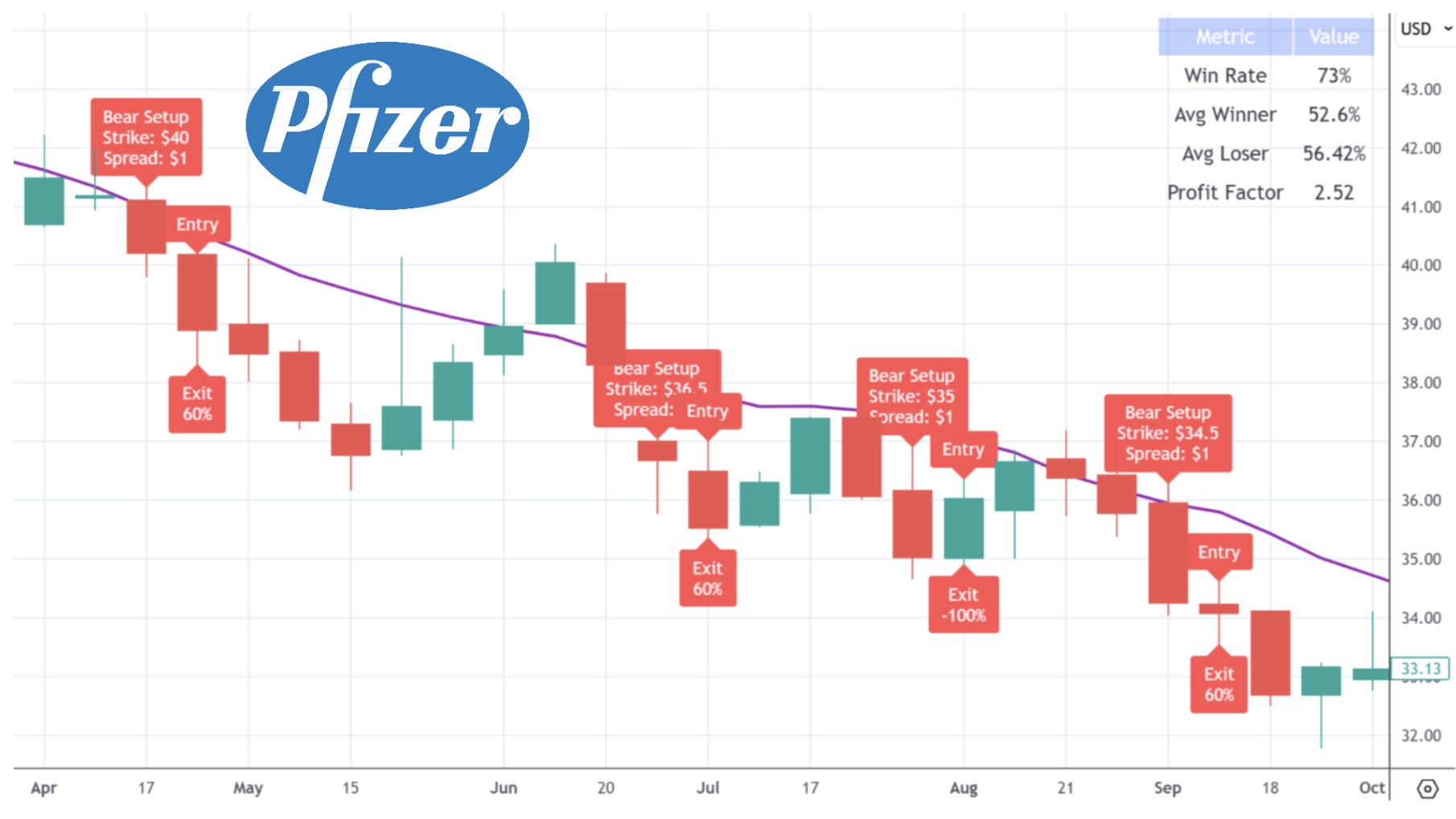 And I bet you can guess how to win your bear trades with this strategy. Your bear trades can either go down or they can go sideways and you win.
