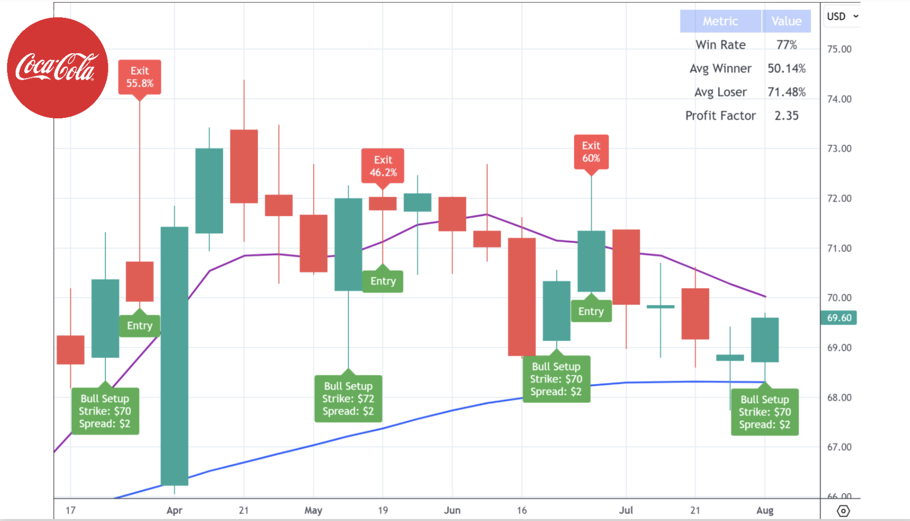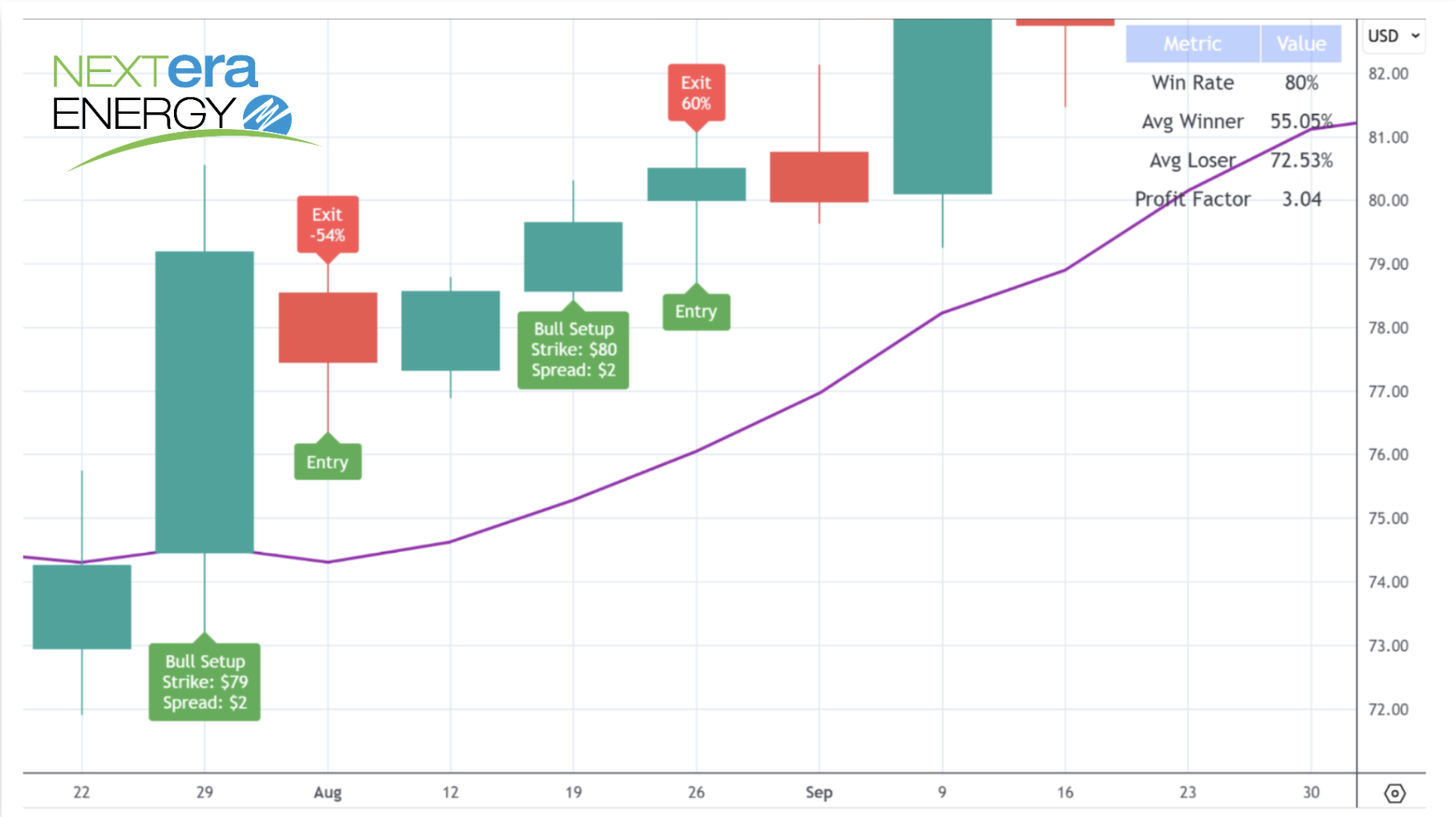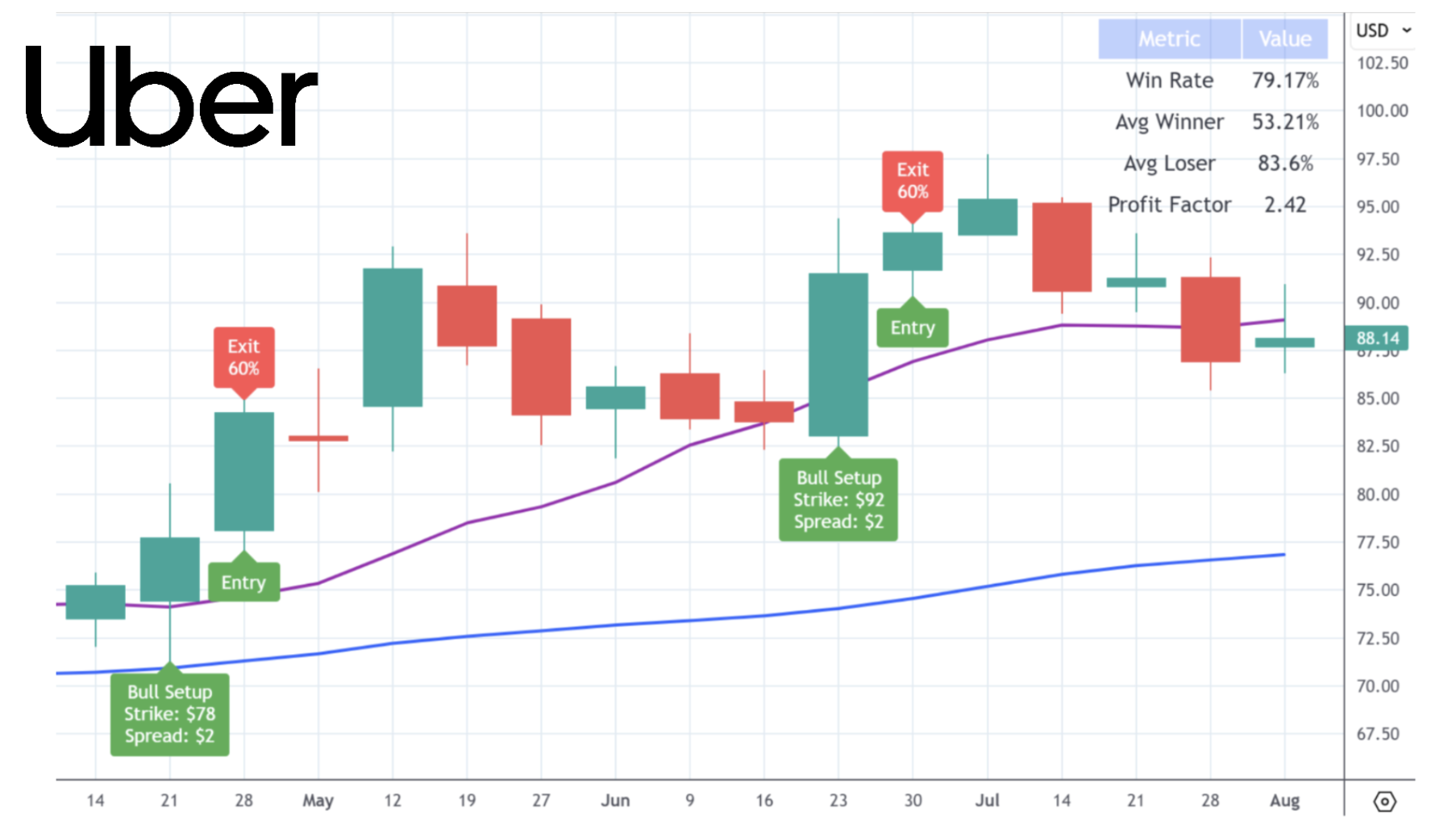 And I bet you can guess how to win your bear trades with this strategy. Your bear trades can either go down or they can go sideways and you win.