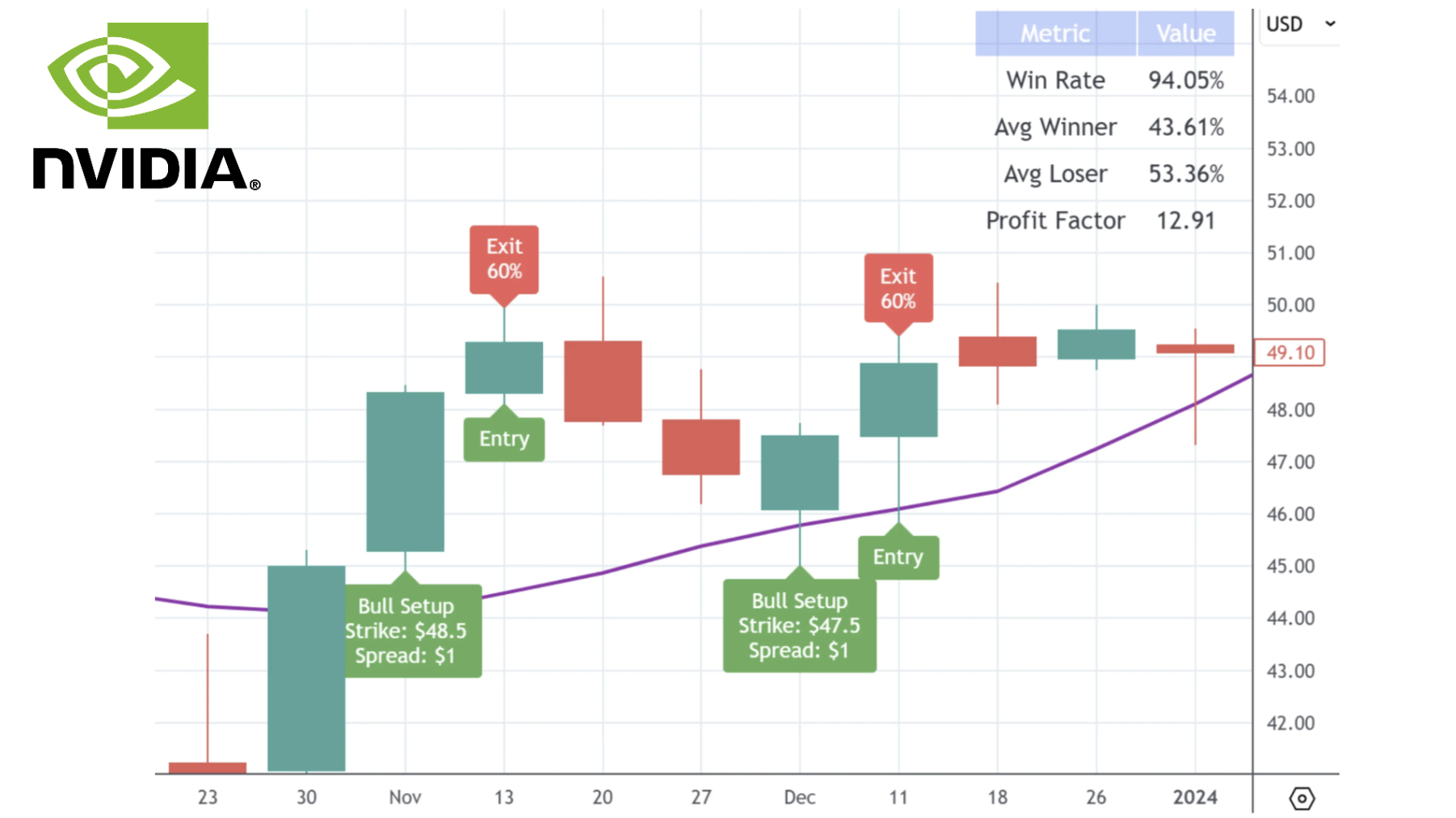I decided to test the new strategy with NVIDIA.