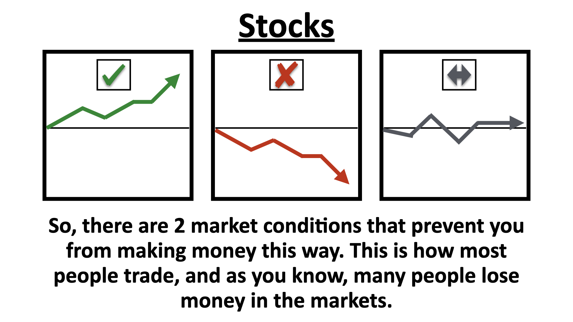 So, there are two market conditions that prevent you from making money this way. This is how most people trade, and as you know, many people lose money in the markets.